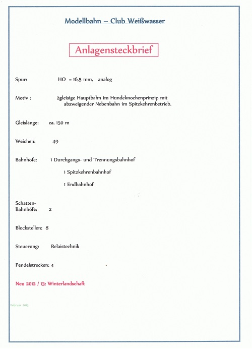 leihgabe überlassen. Bei Vereinsausstellungen wird die Anlage den Besuchern präsentiert.